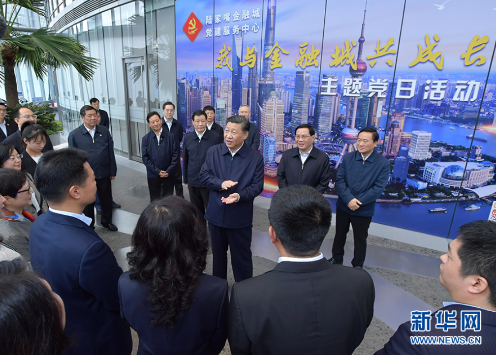 2018年11月6日上午,习近平来到位于上海市浦东新区陆家嘴的上海中心大厦,视察陆家嘴金融城党建服务中心,了解城市楼宇党建工作情况。