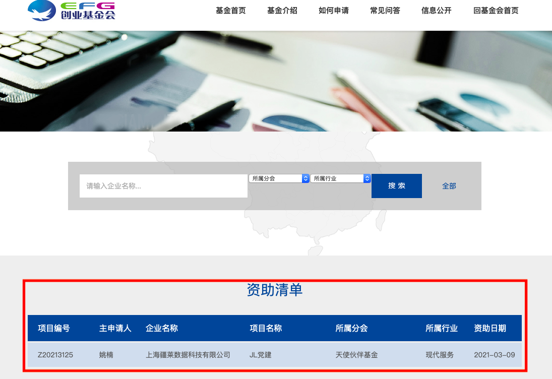 疆莱数据成功获得上海市大学生科技创业基金会“天使伙伴基金”