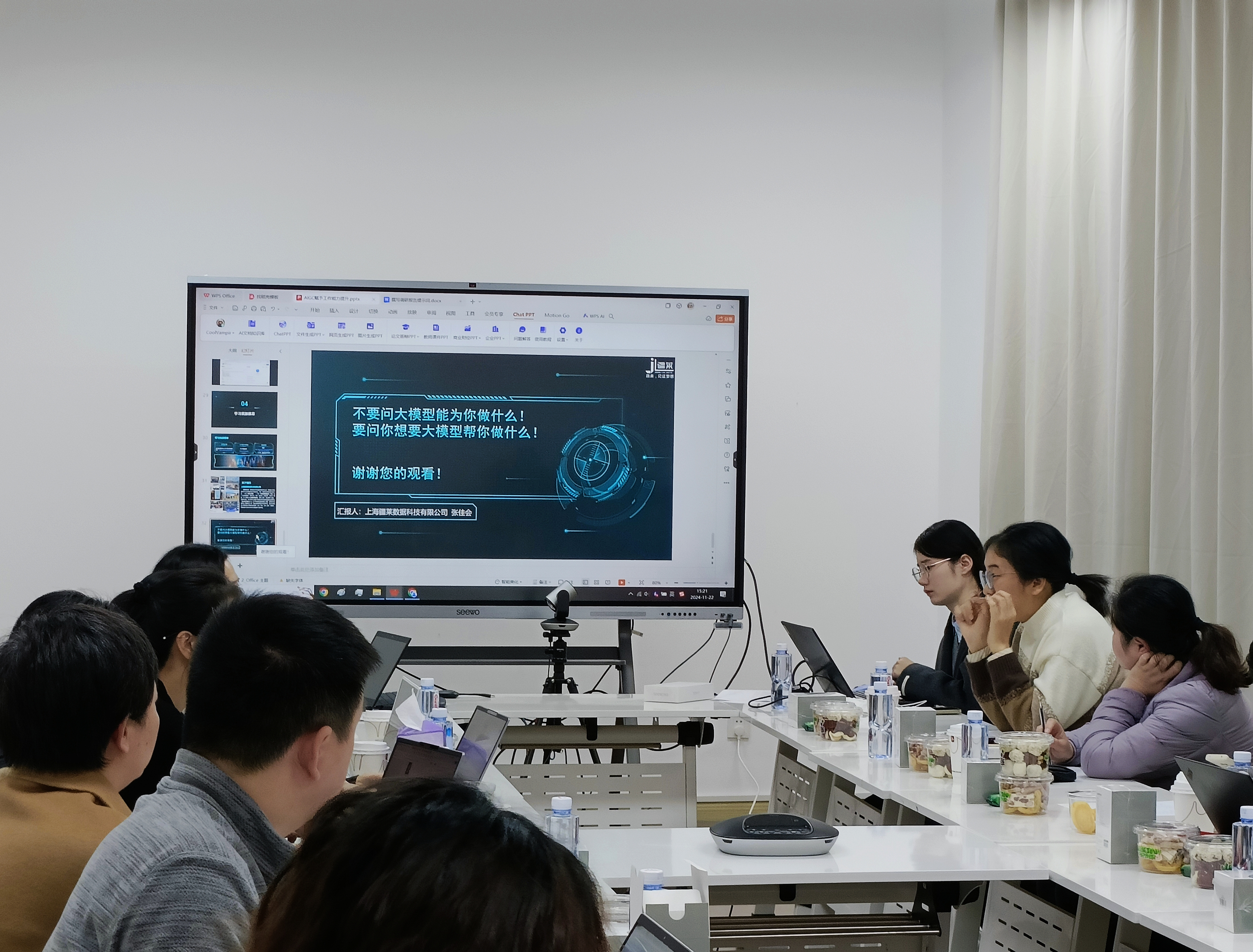 在沙龙分享环节中,疆莱数据的代表深入浅出地讲解了 AI 基础知识,为在场听众揭开了人工智能神秘的面纱,使其对 AI 的原理、发展历程以及当前技术前沿有了更为清晰的认知。随后,代表详细介绍了一系列实用 AI 工具及实践案例,这些工具涵盖了文档处理、数据分析等多个方面,展示了 AI 技术在提升日常办公效率方面的巨大潜力与便捷性。